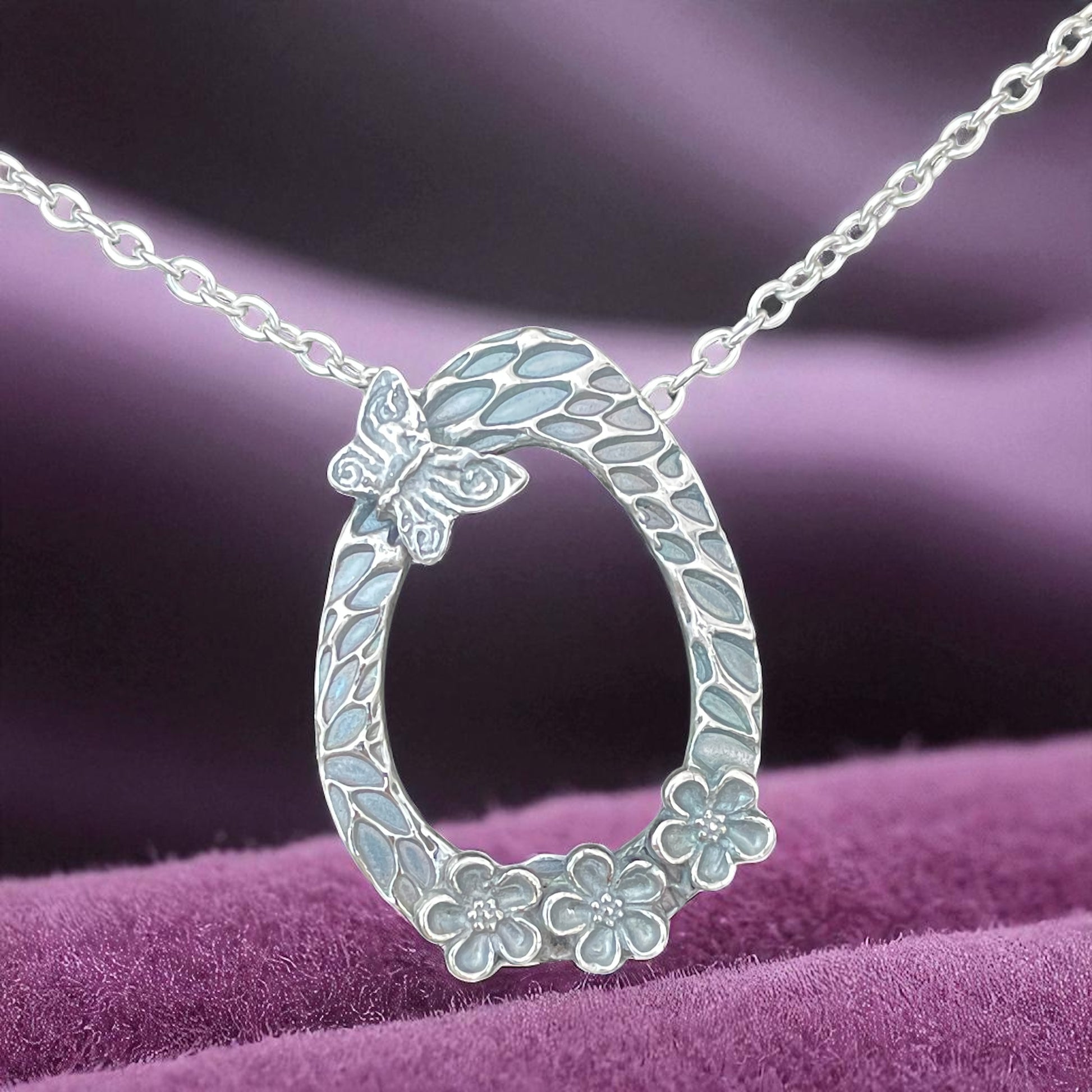 Silver Forget-me-not and butterfly pendant